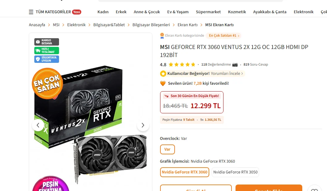 tesekkurler ama ikinci el istanbul içi 8 bin pahalı değilmi bunaRTX 2080 Super olabilir.