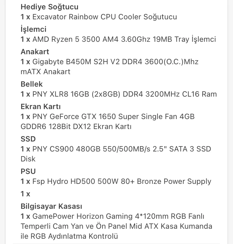 C cKEY 80+ Katılım 6 Mart 2025 Mesajlar 6 Reaksiyon skoru 0 14 Temmuz 2025 #1 Bu sisteme ekran kartı tavsiyesi verebilirmisiniz bütce önemli değil bu parcalara uyumlu yüksek performanslı nvdia platformu olmalı not:işlemci amd ryzen 5 5600 ile değişti Ekler IMG_0662.webp 48.9 KB · Hit: 11