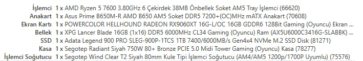 Arkadaşlar incehesaptan geçen hafta aşşağıdaki sistemi almıştım fakat ekran kartını satmaya karar verip nvdia modeline geçmeye karar verdim. Düşündüğüm modeller 5060 ti 16gb veya 4070. Sizce sistemle uyum açısından bir sorun çıkarır mı.