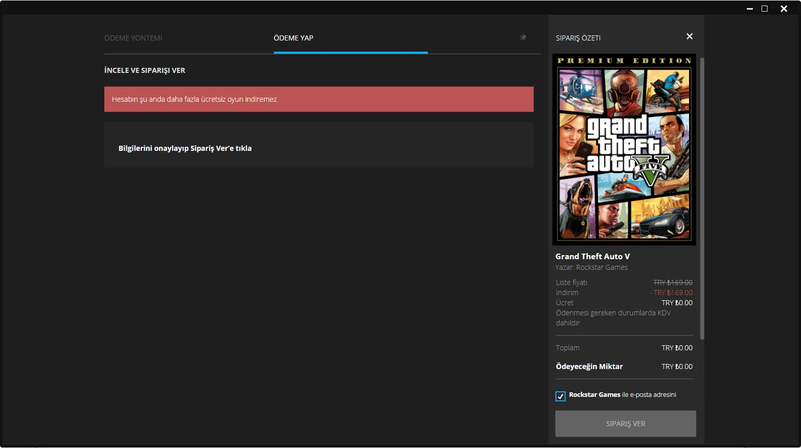 Arkadaşlar hesabın şu anda daha fazla ücretsiz oyun indiremez hatası veriyor