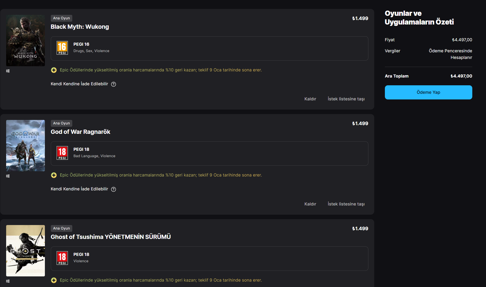 epicgi bekliyorum bende. su an 1499 tl , indirimde god of war ragnarök ile 990 tl ye düşer gibi. %10 epic puan da verirse. daha da hesapli olur. su anda var mesela %10