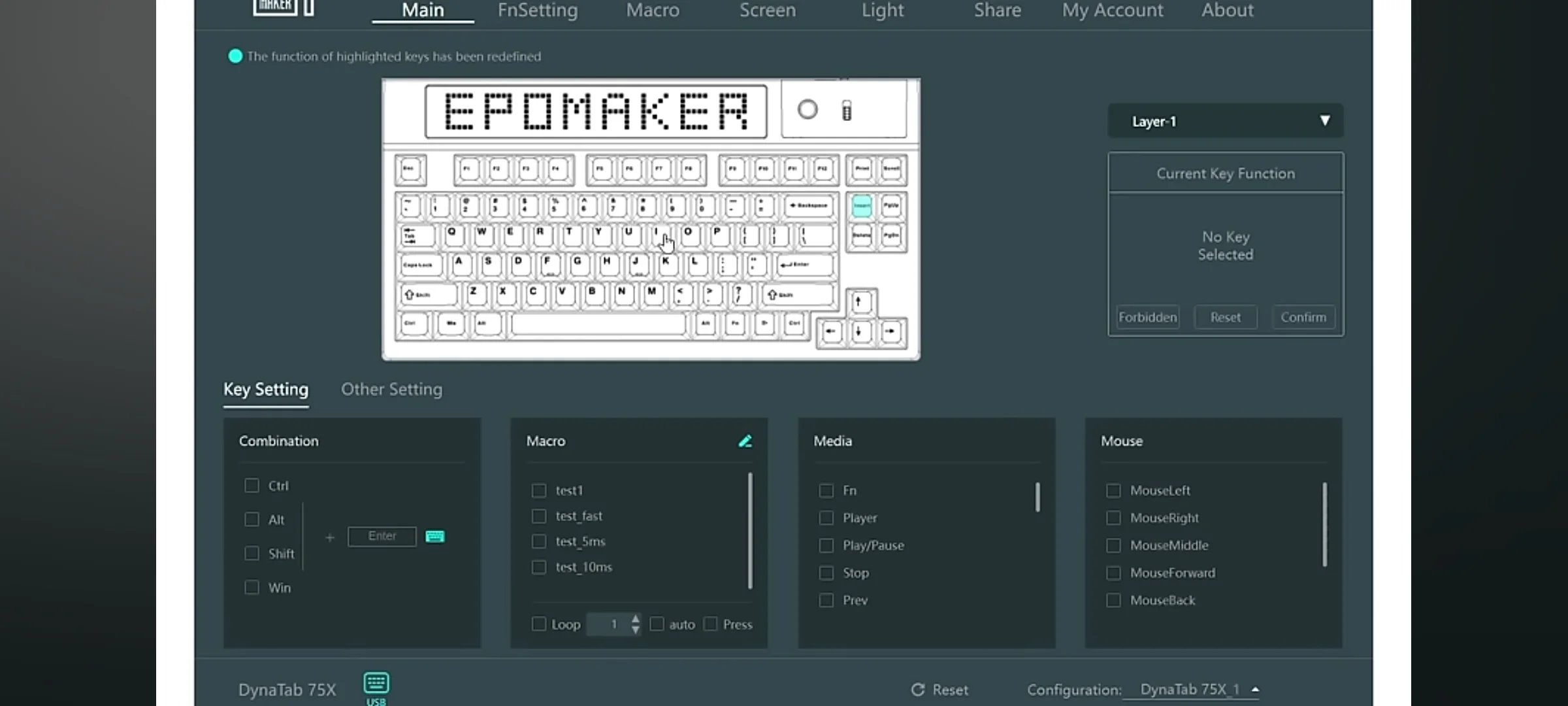 klavyeyi kablo ile bağlayın bu ekrandayken klavyenin gösterildiği bölümden çalışmayan tuşa basın sonra sağ taraftan forbidden basın confirm diyin sonra reset basıp tekrar confirm diyip dongle ı takıp dongle moduna geçin