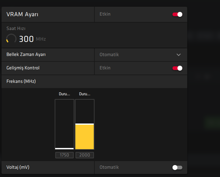 Memory clock ne? UV dogru evet.