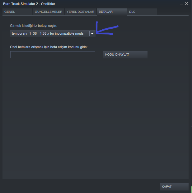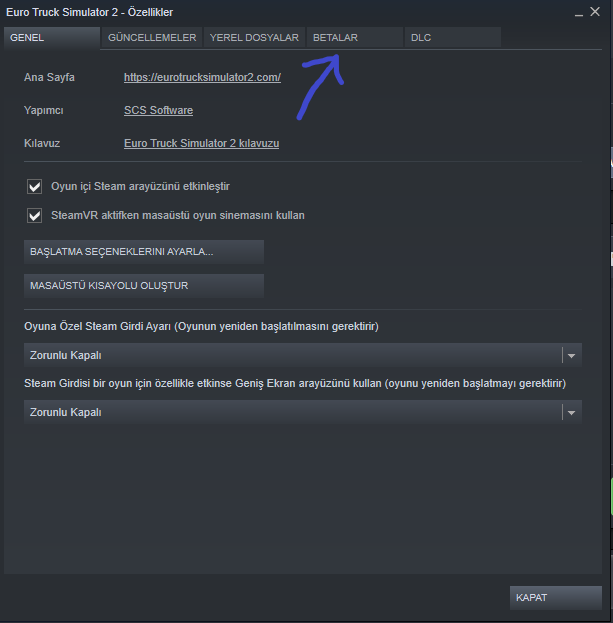 Steam Kütüphane'yi aç, ardından ETS 2'ye sağ tık yap, ''Özellikler''e tıkla,