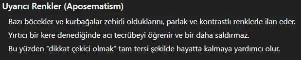 Evrim renkleri ve sanatsal desenleriyle göze çok iyi gelen böcekleri kuşları hayvanları nasıl açıklıyor? İnsanlar için şirin olarak algılansa da diğer canlılar için bir şey ifade ettiğini sanmıyorum aksine daha çok ilgi çekip avlanmalarını kolaylaştırabilir.