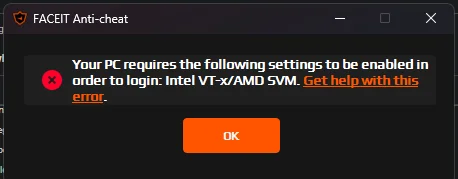 T tier1 80+ Katılım 7 Kasım 2021 Mesajlar 26 Reaksiyon skoru 1 Dün, 20:49 #1 Faceit AC'ye girmeye çalıştığımda böyle bir hata alıyorum çözüm önerisi olan varsa bekliyorum Ekler faceit.webp 9.1 KB · Hit: 6