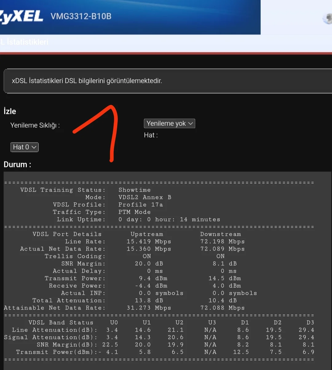 Arkadaşlar 2 numaralı modem tenda v12 ve hat değerlerim böyle ve gün içinde kopma sorunları yaşıyorum, 1 numaralı ise eski modemim Zyxel vmg3312 bugün test amaçlı bu modemi taktım ve hat değerlerim bu şekilde oldu.Acaba sorunlarım tenda modem ile alakalı olabilirmi