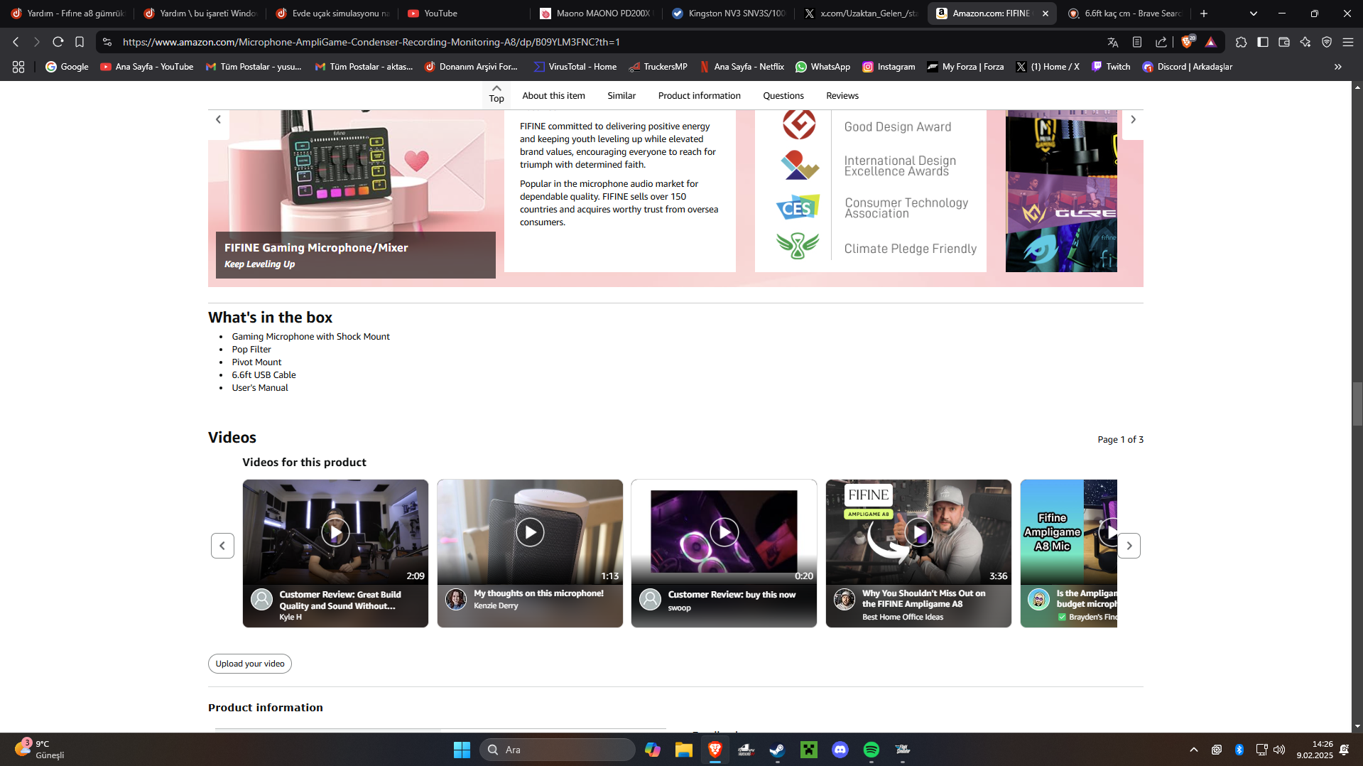fifine a6t alabilirsin dostum tr de vardı ben almıştımMerhabalar. Maske isimli youtube kanalından fıfınea8 mikrofonunu gördüm fakat ülkeye 30dolardan fazla kargoyla beraber sipariş yasaktı galiba bilgi verebilirmisiniz türkiyede satılıyormu fıfıne a8