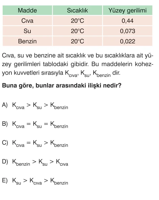 cevap A. Sıcaklıkları eşitse yüzek gerilimi büyük olanın kohezyon kuvveti de büyüktür.Şu soruda ne istediğini anlayamadım?