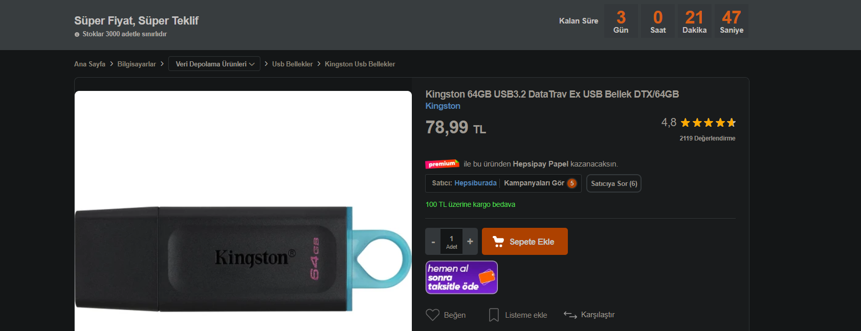 Merhabalar. Açıkçası fiyatlar biraz da olsa düşmüş. Normalde 90 TL altında 64 GB USB veya 60 TL altında 32 GB USB bellek yoktu. Şu an baya indirime girmiş. Zannediyorum Kasım ayına özel indirim. Özellikle 64 GB USB bellekler biraz daha indirimde. Değerlendirmenizi öneririm. https://www.hepsiburada.com/usb-bellekler-c-970