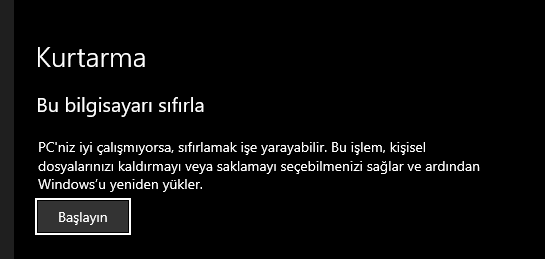 Böyle flaşlı bir şey yapamayacağım kaybettim maalesef windowsta olan Sıfırla'yı yapsam mantıklı olurmu?