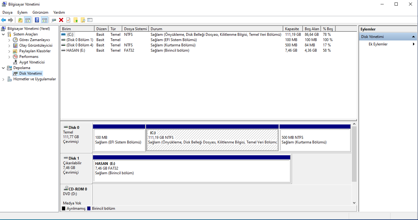 Merhabalar. Ben bu gün bilgisayarıma format atarken yanlışlıkla belli bir hafızayı sildim normalde bilgisayarım 500gb hafızası var ancak sadece yereldiks c olarak 119 gb görünüyor. Bu durumu nasıl düzelte bilirim?