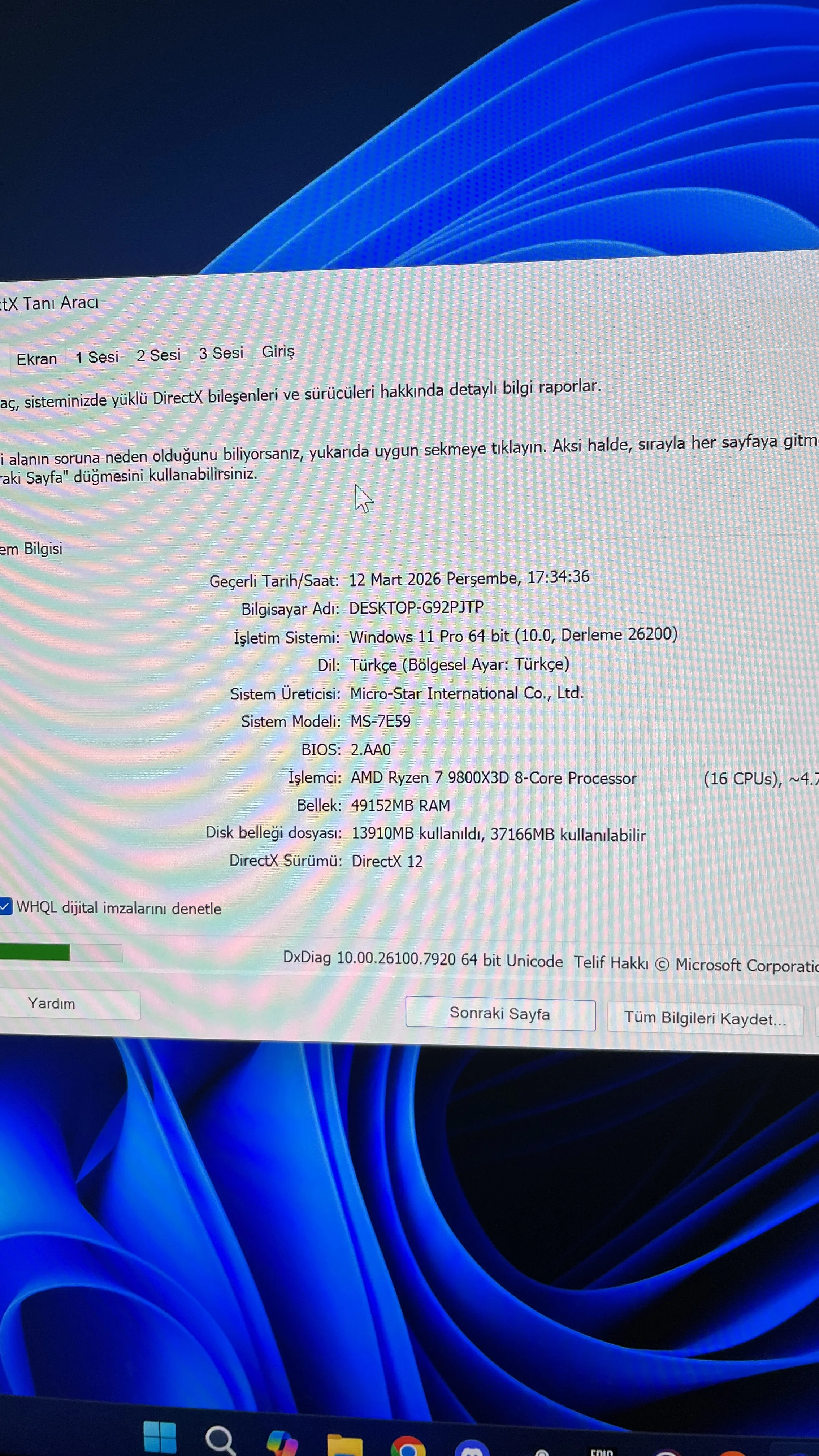 İşlemci r7 9800x3D