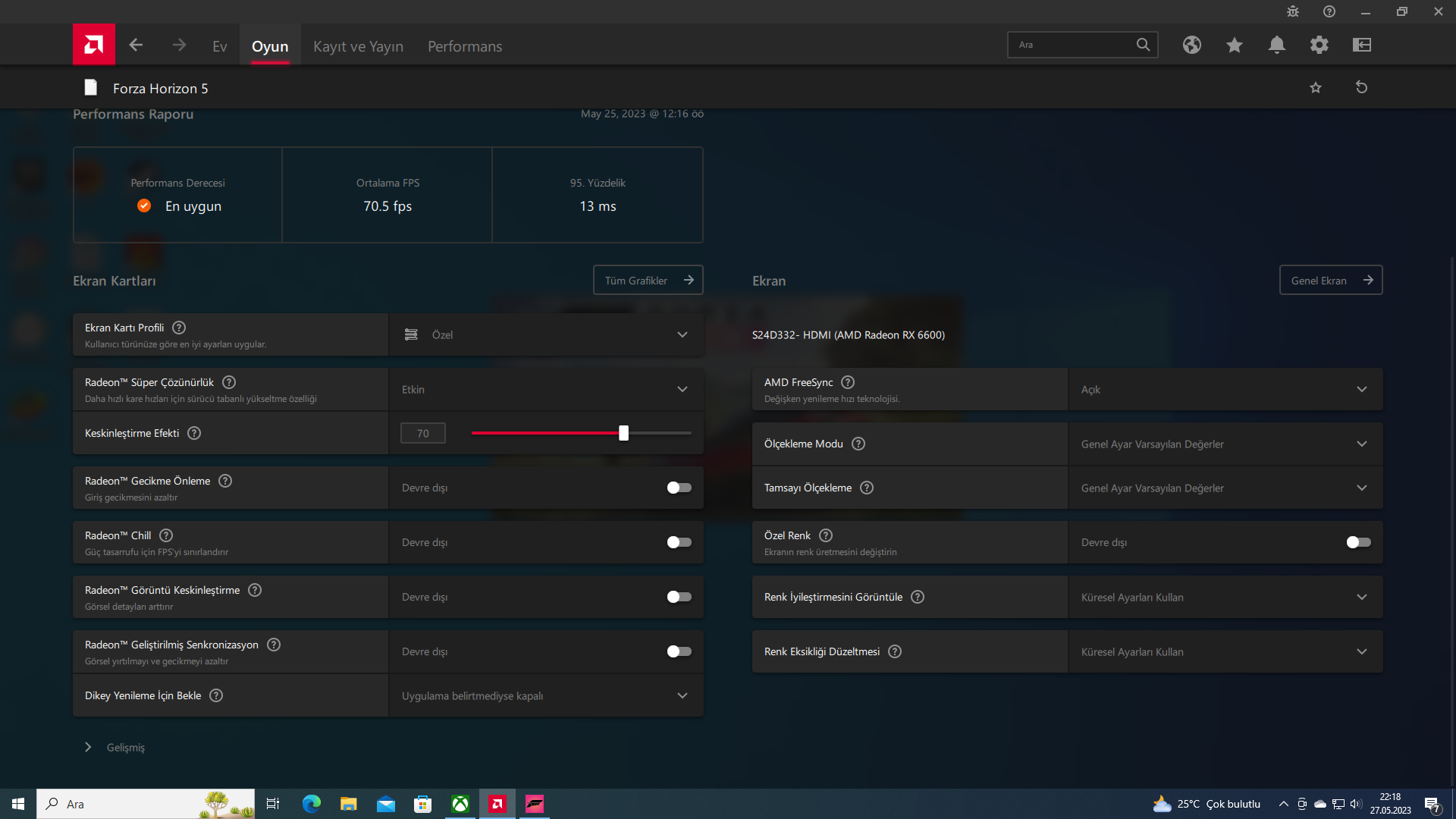 RX 6600 zaten güçlü bir ekran kartı monitör 75hz destekliyor oyunlarda 75fps altına düşmezsen bir sorun olmazMonitorum s24d332h Ekran Kartım rx 6600