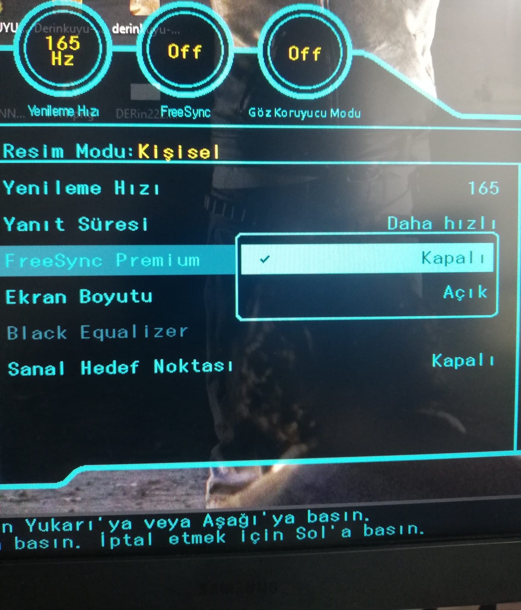 Bende 144 hz monitör var. Eğer hikaye oyunları oynuyorsan aç ama cs gibi gecikme olmaması gereken oyunlar oynuyorsan açma. Ben cs ve lol oynadığım için kapalı.Açimmi arkadaşlar anlamadım şimdi. Amdde çalışıyormuş glb.