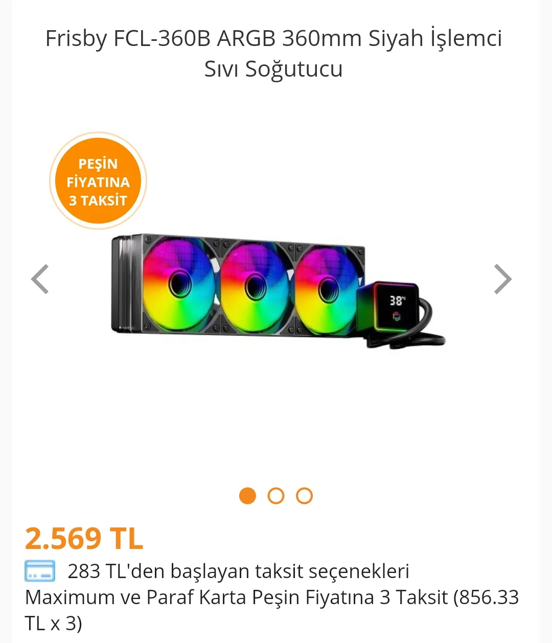 Merhabalar, Ryzen 5 9600x işlemcime sıvı soğutma arıyorum. Frisby FCL-360B ARGB 360mm Siyah İşlemci Sıvı Soğutucu dikkatimi çekti, bu fiyata 360mm sıvı sogutma tuhaf geliyor. Bütçem çok kısıtlı ve estetiklikte istiyorum. Bu sıvı soğutma ve marka hakkında bilgisi veya deneyimi olan cevap verebilir mi? (Bu fiyata üst düzey bir beklentim yok zaten.)