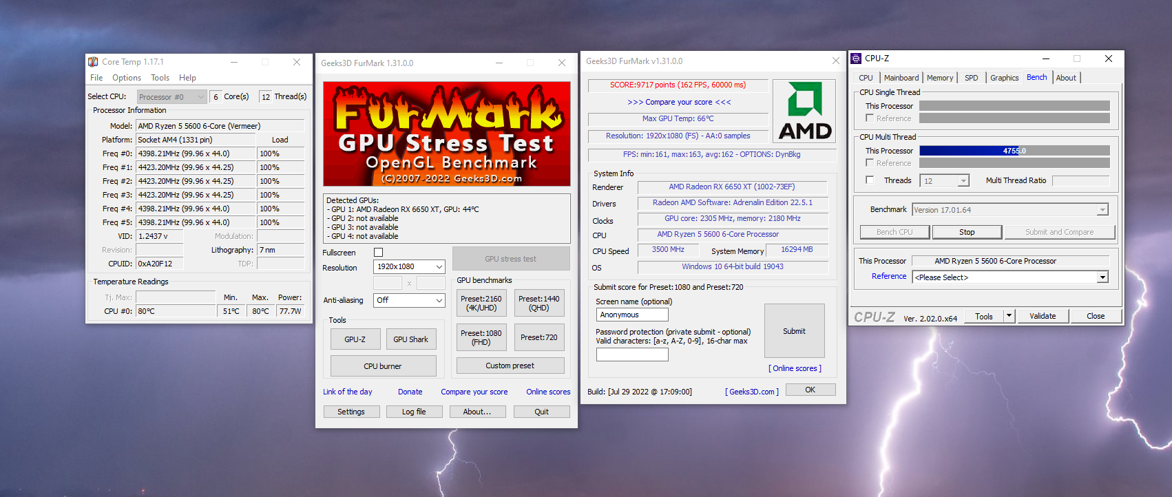 Merhaba arkadaşlar . Yakın zamanda Ryzen 5 5600 ve rx6650xt li sistem topladım . Bugün kurulumunu yaptım . Gpu ve cpu için bazı testler gördüm internette bunları denedim . Çıkan sonuçları paylaşmak istedim çünkü pek bilgim yok sıcaklıkla veya kullanımla ilgili. Testler nasıl sizce anormal bir durum var mı ? Teşekkürler cevaplar için .