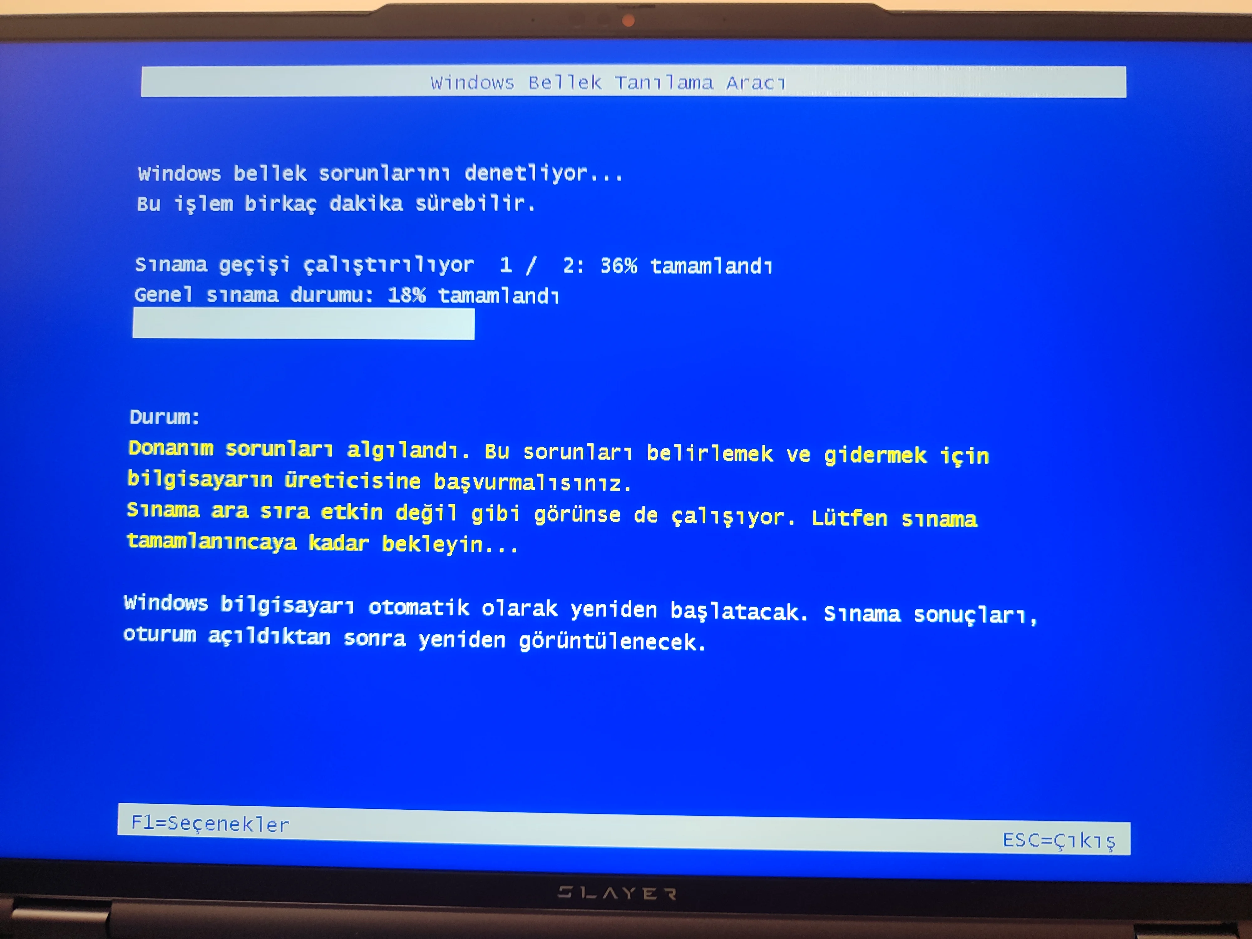 Merhaba Sevgili DonanımArşivi Forumu, modeli Game Garaj Slayer R9T-5060 C1 olan laptobumu 1 Kasım cumartesi günü Hepsiburada üzerinden sipariş verdim. Laptobum 4 Kasım günü gelmesine rağmen kendim kutusunu 7 Kasım cuma günü açmış bulundum. Yazılımlarını gelen flash disk ile eksiksiz bir şekilde kurduktan sonra Steam üzerinden indirdiğim Counter Strike oyununda sürekli oyundan atma hatası yaşadım ve Epic Games üzerinden Cyberpunk 2077 adlı oyunu indirmeye çalışırken sürekli hatalar alıyordum. Bilgisayar bu hataların üstüne sürekli mavi ekran hataları da veriyordu. Bunun üzerine bilgisayarcıdan tekrar sistemi kurması için laptobu bilgisayarcıda kurdurdum. Fakat sorunlarım aynı şekilde hiçbir şey değişmeden devam etti. Yapmış olduğum ram testinde ise donanımsal bir hata olduğunu tespit ettim. Yeni aldığım bir bilgisayarda bu kadar sorun olması beni gerçekten hayal kırıklığına uğrattı. Sorunlarımın fotoğrafları aşağıda mevcuttur.