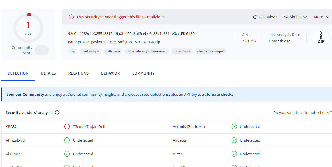 VBA32 diye bir yazılım bulmuş virüsü ama kısaca virüs totaldan tarattımkalsın hangi uygulama ile tarattın bilmiyorum ama merak etme zararlı bir yazılım değil