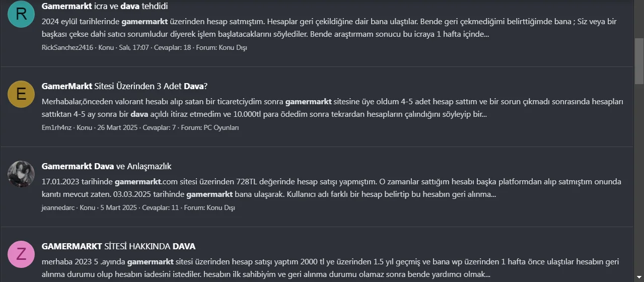 Gamermarkt sitesinde 550 liraya sattığım valorant hesabının 2 hafta sonra geri çekildiğini söyleyen bir mail almam üzerine gamermarktın whatsapp hattı üzerinden iletişime geçtim. Bana ya hesabı geri vermemi ya da 1217TL ücret ödememi söylediler. Hesabın çekildiğine dair herhangi bir kanıt veya 1217 tl ücretin detaylı faturasını istediğimde kvkk ve ticari sırı bahane edip sadece dava açıldığında görebileceğimi, farkın mağduriyetten kaynaklı olduğunu söylediler. Hesabın ilk sahibi ben olmadığım için hesabı çekmek gibi bir şansım olmamasına rağmen hesabın ücreti olan 550TL'yi ödemeye teklif ettiğimde bana 11 Hazirana kadar 1217 TL ödemem için gün verdiler aksi halde dava açacaklarmış. Hukukdan anlayan ya da bunlarla önceden uğraşmış insanlar yardımcı olabilir mi? Bu yaptıkları yasal mı?