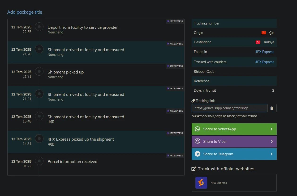 Parcels sitesinden bir track eder misiniz? Orada detaylar yazıyor , diğer arkadaşlar China Post filan demiş.