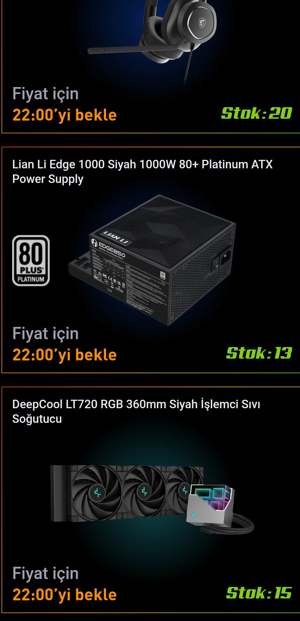 Lian li 9k Asus 8500 hangisi1000 lira indirirler en fazla oda günlerdir satamadığı ürünleri seçiyorlar çok indirim bekleme.