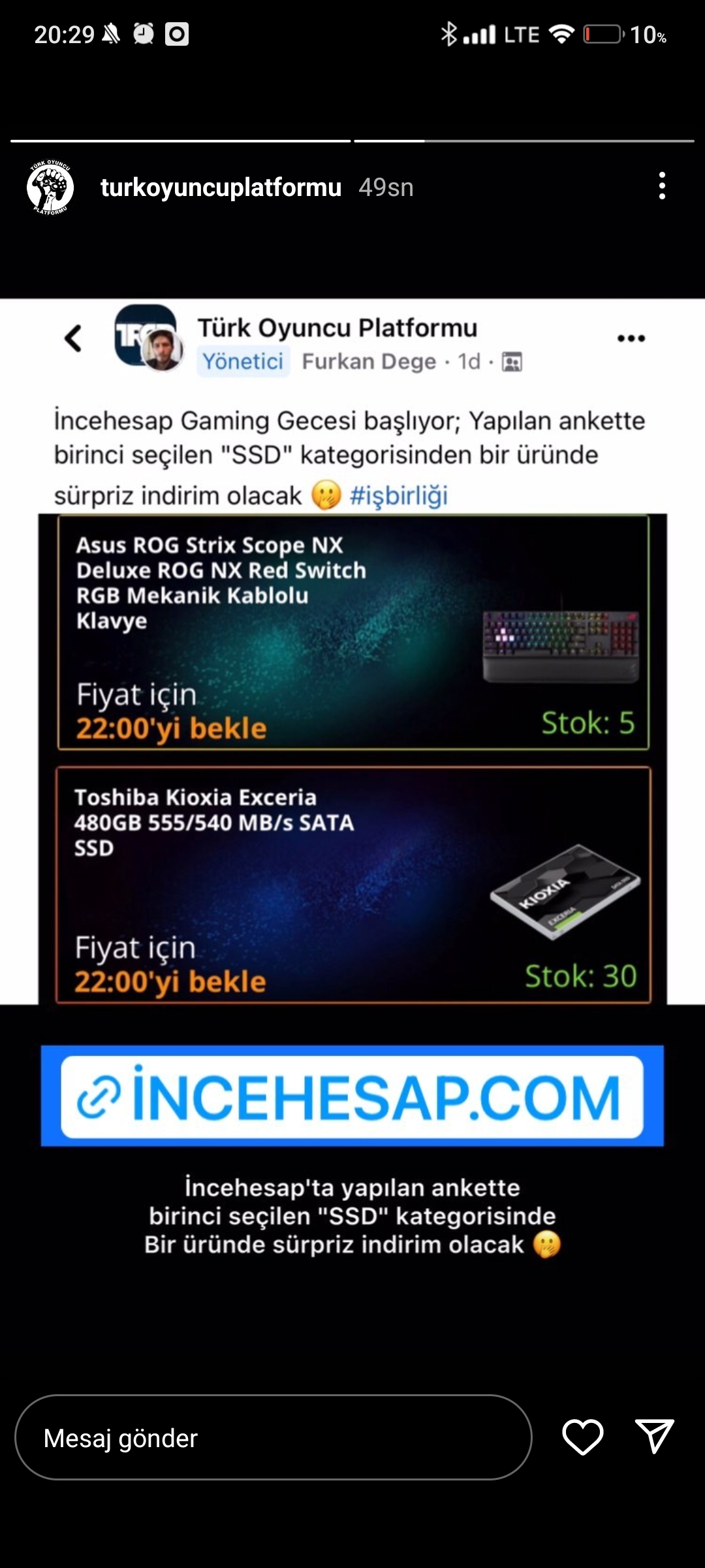 Hocam ssd kategorisinde bir üründe diyor o olamaz bencetürk oyuncu platformu instagramda böyle bi story paylaşmış.