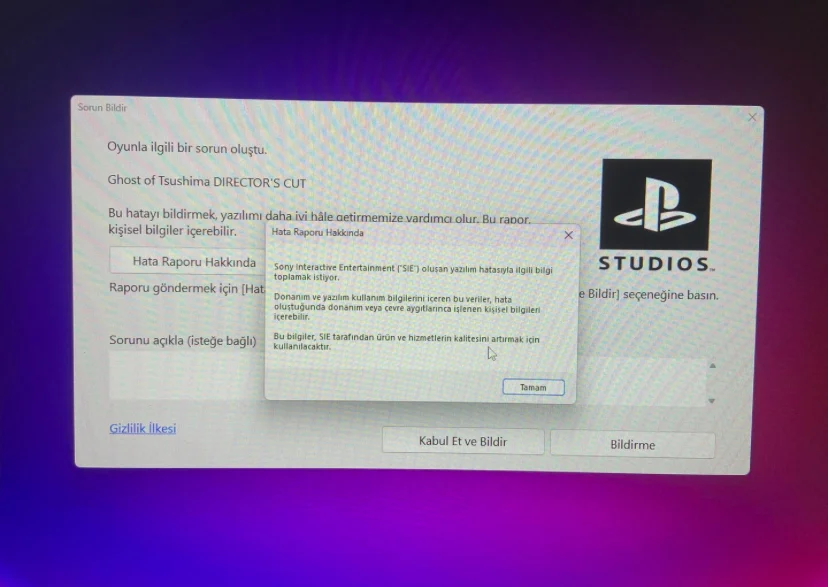 Ghost of tshushima Oyun ile ilgili bir sorun oluştu hatası