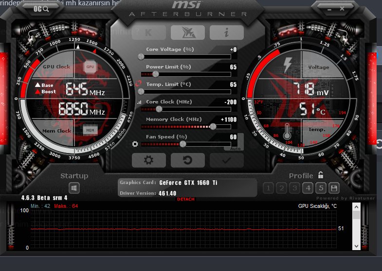 msı afterburner üzerinden hem daha iyi mh kazanırsın hem de w düşer