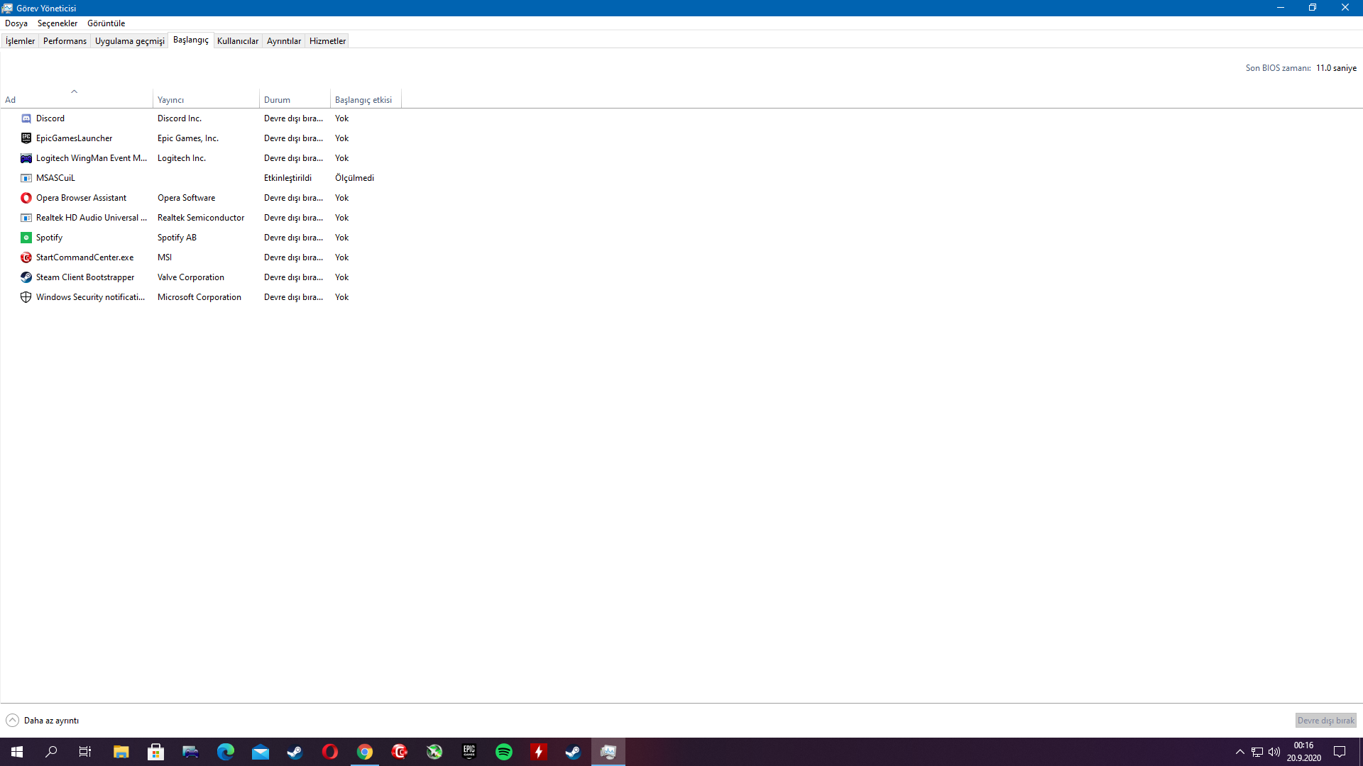 Hiç öyle bir şey görmedim ben. Görev yöneticisindeki işlemlerde var mı?