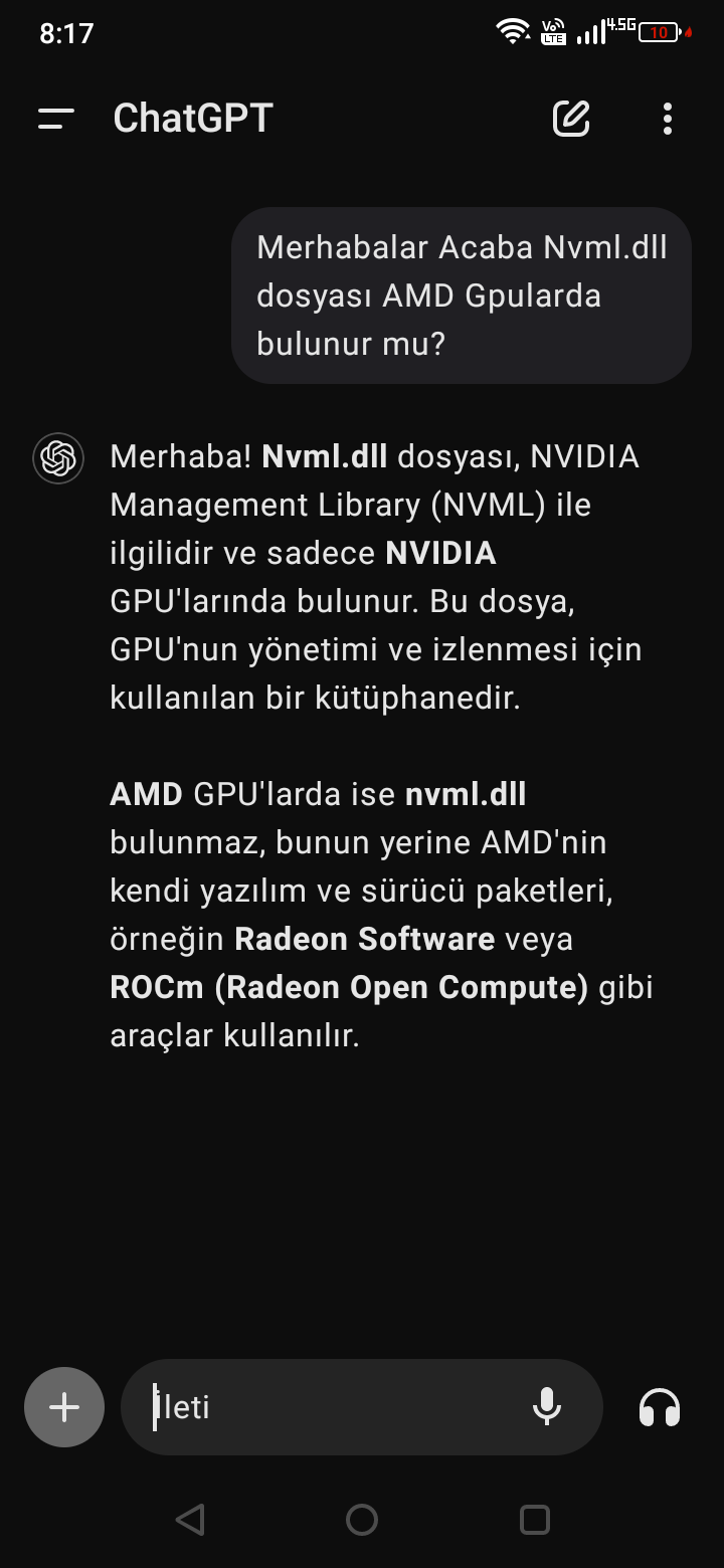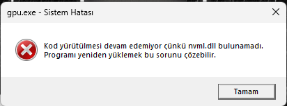 -Saka bir yana bu nvml.dll dosyası NVDİA kartlarındaki bir kütüphanedir Bı kaç Çözümü olabilir