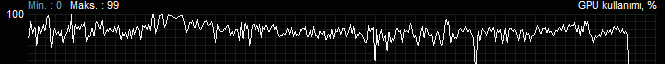Oyun içi bir görüntü ve 10 dakikalık bir oynanıştaki GPU kullanım grafiğini ekledim.