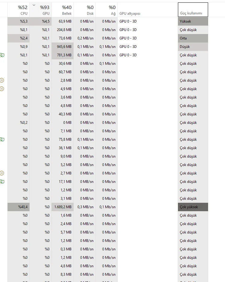 Cahit Arf yazmış: Hocam başka değerler yok mu daha aşağıya doğru kaydırınca Devamı için tıklayın... Alt taraflarda hep %0 işlemcidede var anlamadım