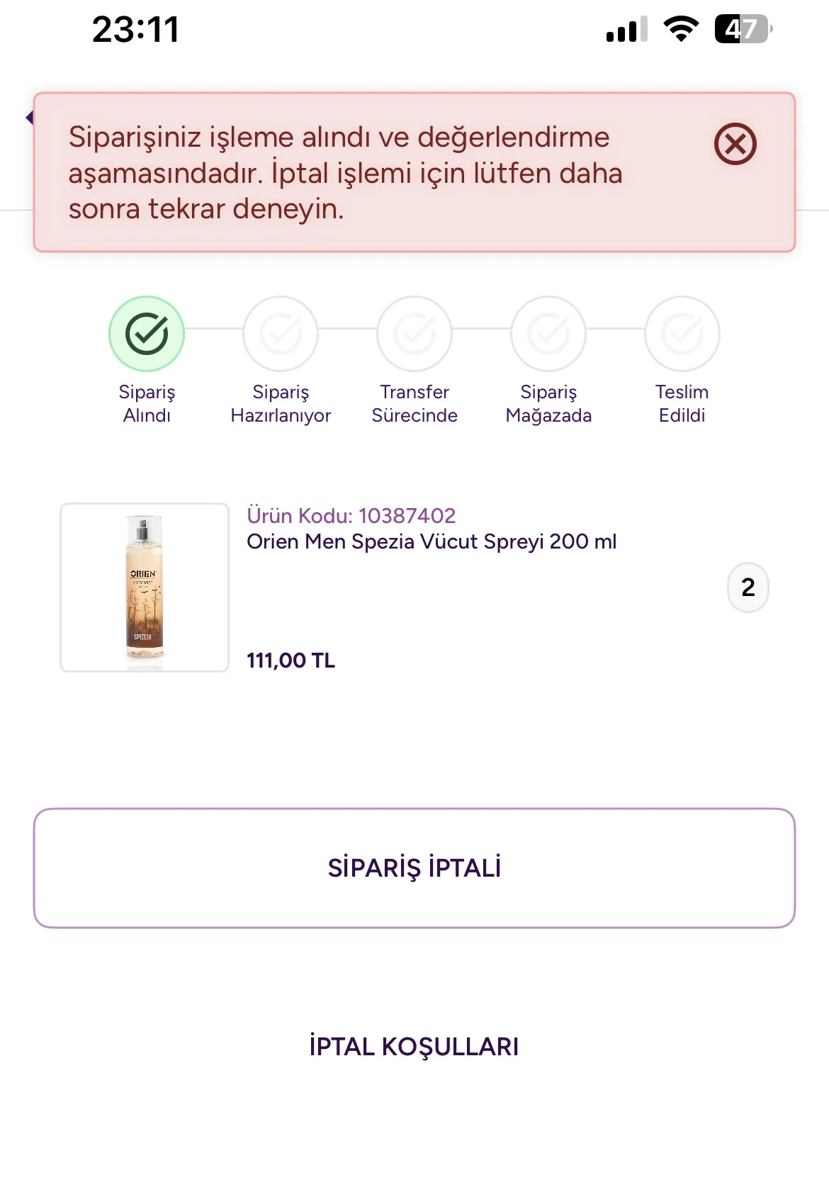 Siparişler düşmeye başladı da , aynı üründen 6 tane aldım iptal seçeneğini bulamadım yardım 🤣