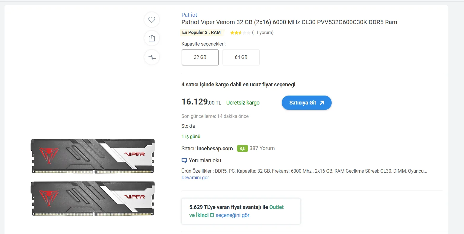 Ne özelliği varmış bunun ? CL38 ve sadece 32GB.
