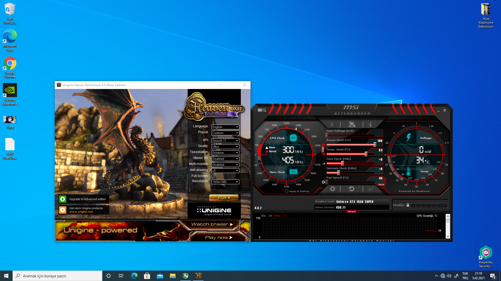 Kullandığım programlar: MSI AFTERBURNER, Heaven Benchmark.