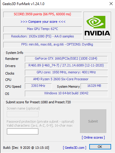 Geçen haftalarda arkadaşımla birlikte RX 570 4 GB olan kartlarımızı yükseltmeye karar verdik. Ve amazondaki bir kampanya dahilinde 1660 XS OC modelini satın aldık. Fakat eski ve yeni ekran kartlarında aynı ayarlarda furmark yaptığımızde RX 570 4 GB olan kart 1660'dan daha yüksek performans aldığını gördük. İnternetteki tüm testleri 8 GB modelinin bile 1660'a yaklaşamadığını görüyoruz. Ekstra testleri 1060 3G kullanan arkadaşıma yaptırdım (4414 puan) o da yüksek bir fps ile 1660'a fark attı. Şimdi bu sonuçlarda bir anormallik olduğu belirgin, önemli olan bu anormalliği nasıl gidereceğimiz? Ürünler geldiğinde kutular ikinci el gibiydi fakat amazona güvenerekten bir sorun olmayacağını düşündük. Bu durumlar hangi sebepten kaynaklıdır, nasıl giderebiliriz? Aşağıda sistem bilgisini ve ssleri bulabilirsiniz.