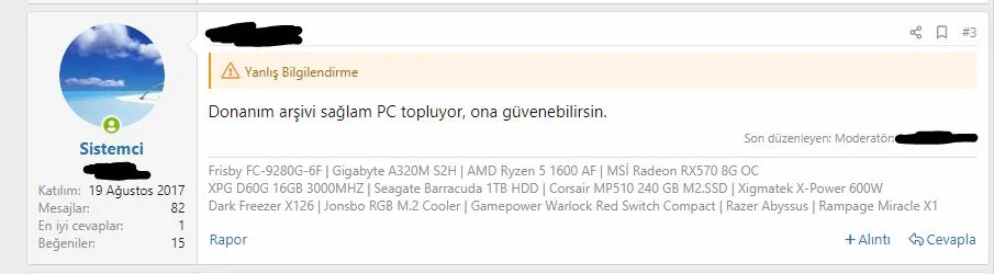 bu forumda biz bir sürü markanın sitenin şeylerini öneriyoruz yer yer technopat içeriklerini de paylaştık fakat bizim amacımız gerçekten yardım etmek olduğu için ( Abdullah Abinin yanı) kimse gelip çocuk gibi böyle etiketler koyup diss atmıyor. gerçekten yazık onlara :(