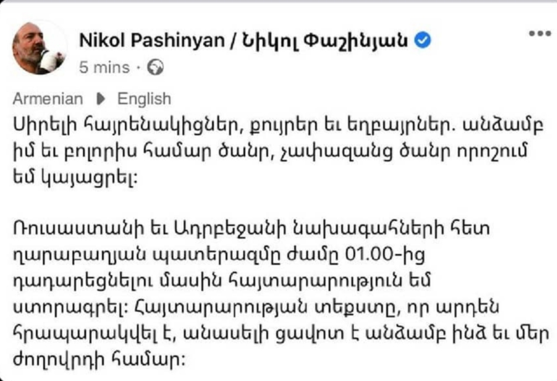 Ermenistan teslim oldu Karabağdan çekiliyorlar. Kardeş ülke Azerbaycan kurtardığı topraklarda kalacaklar.