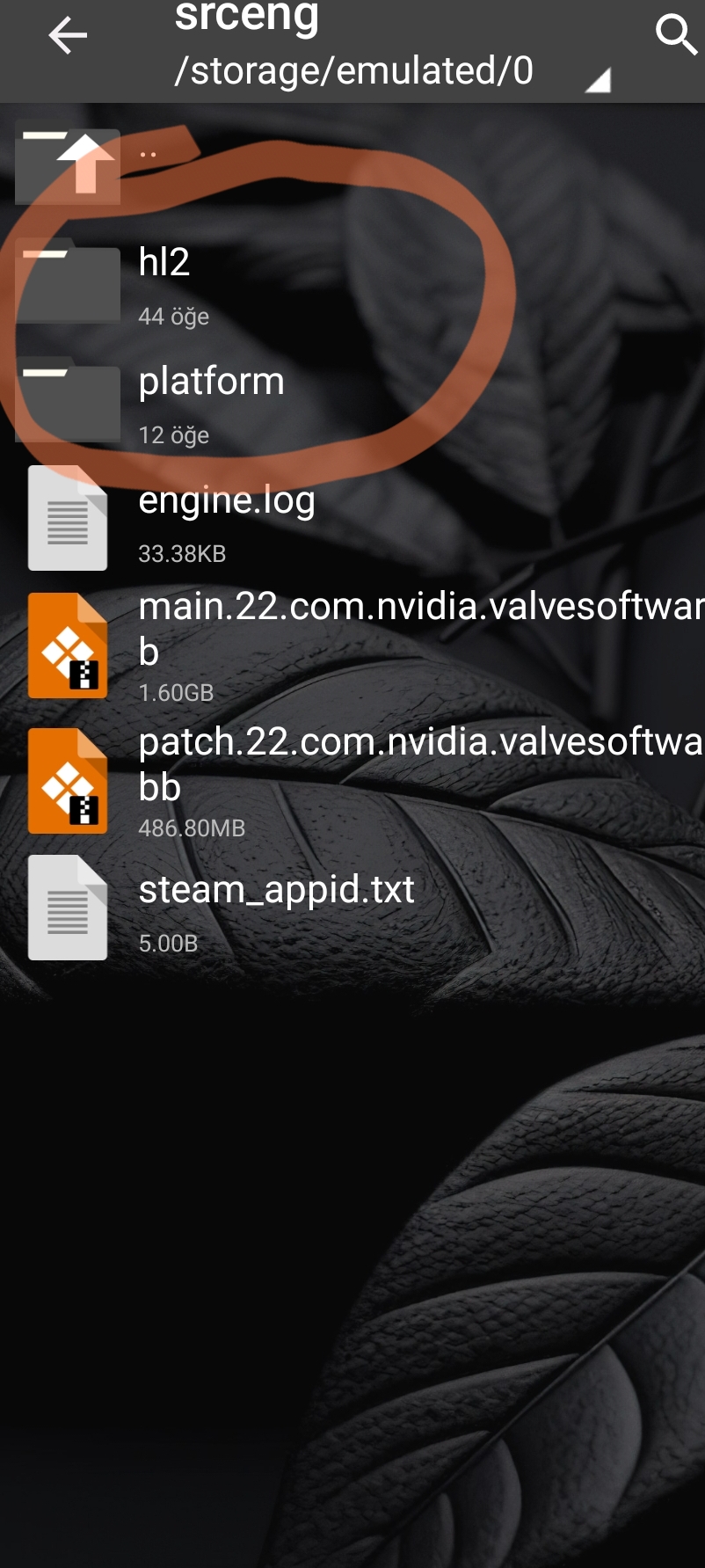Arkadaşlar bu dizine yüklediginiz HL2 ve platform dosyalarını ekleyin. Neden OBB falan var derseniz her site şu an 20.yıl dönümüne özel sürümü paylaştığı için bende malum APK sitesinden eski sürümün dosyalarını indirdim.