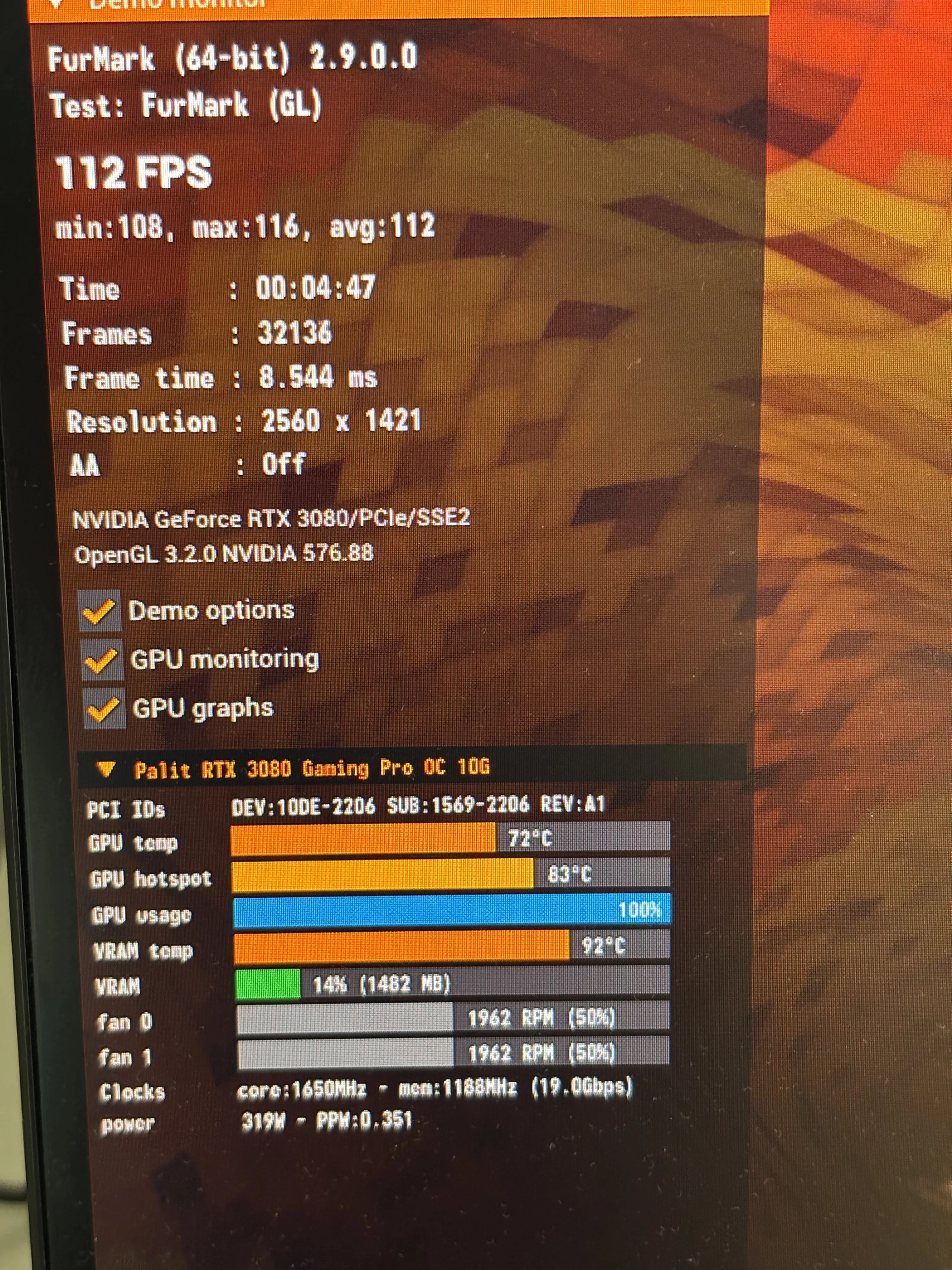 furmark testini 8/10dk yap ve 2k cözunurlukte yapmanı tavsiye ediyorum sıcaklık değerleri ile fan yüzdesini kıyasla vram sıcaklığı 90kusurlerde normal