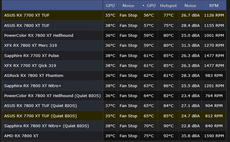 sapphire pulse gayet iyi görünüyor aslında buradaŞurada RX 7800 XT ve RX 7700 XT ler karışık değerlendirilmiş. Belki işine yarar.