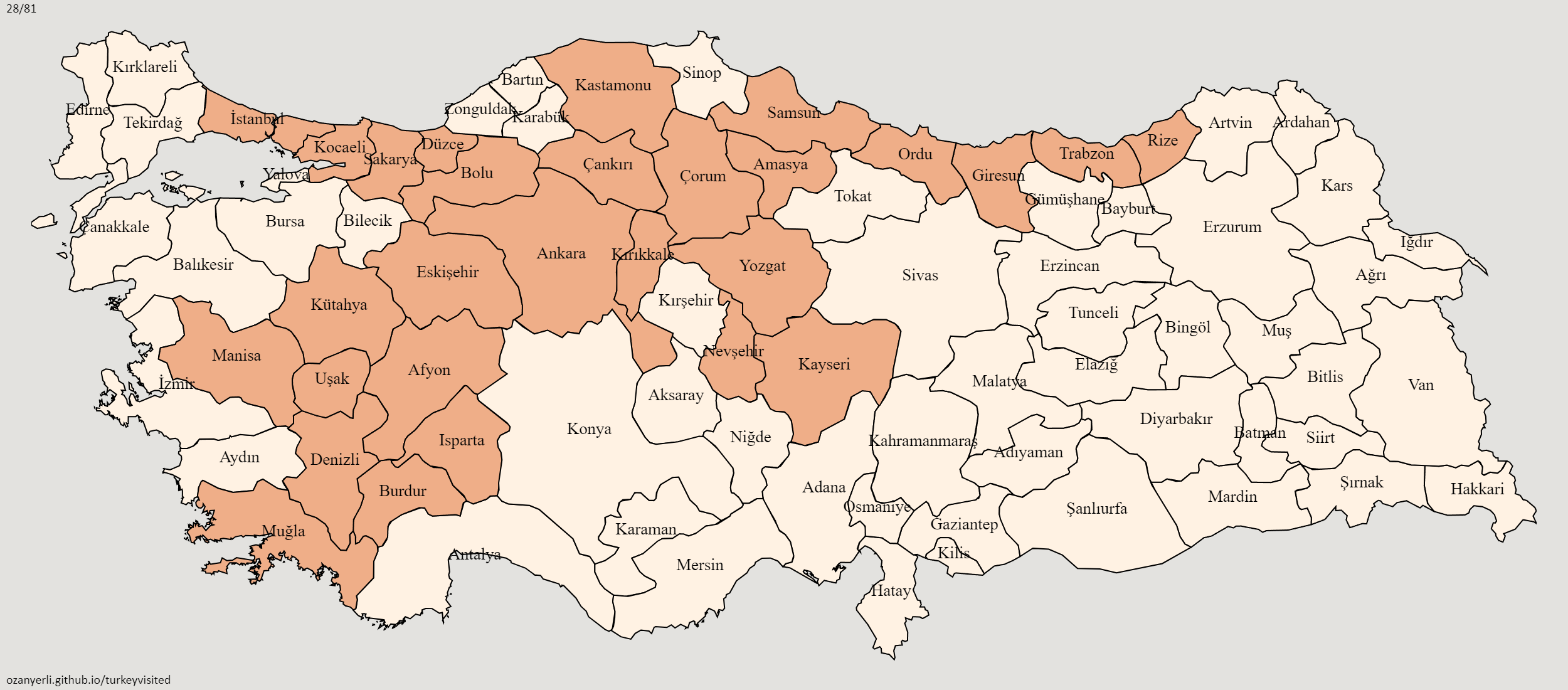 Buradan gittiğiniz şehirleri işaretleyip ss atabilirsiniz. Bakalım en çok kim gezmiş.