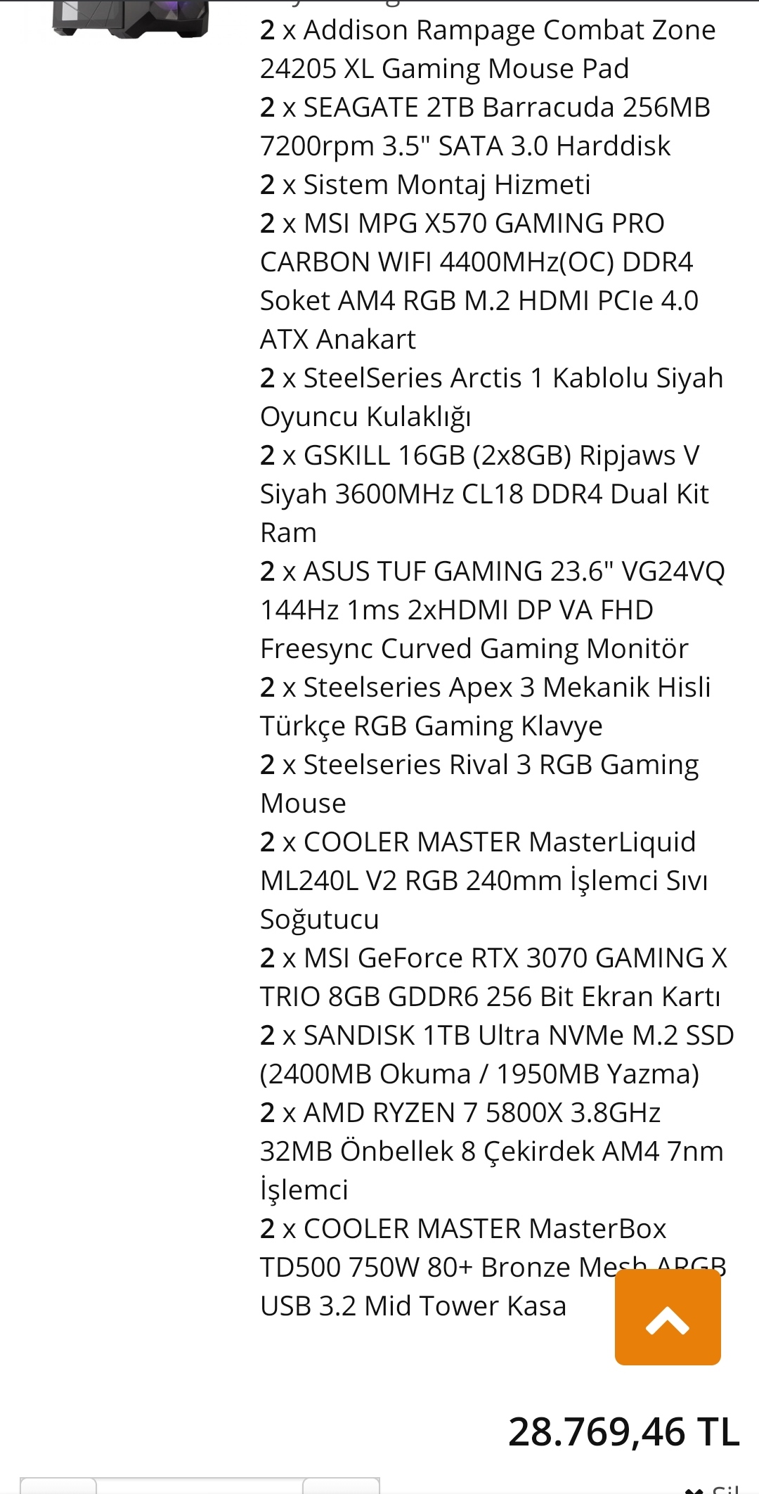 Selamlar 2 sistem arasında kaldım biri rtx 3080 biri rtx 3070 arada 7 bin TL fark var sizce hangisi alınır