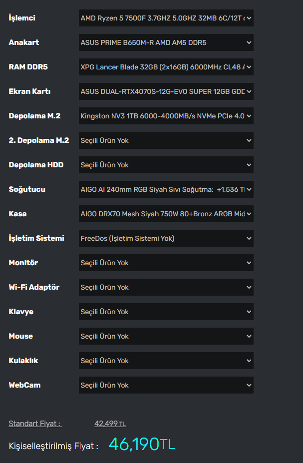 Daha fp sistem var miRX 7900 GRE ile RTX 4070 Super arasında sadece %2'lik bir farkla RX 7900 GRE önde. Fakat RX 7900 GRE olan sistem bana pahalı geldi. Ben olsaydım RTX 4070 Super olanı alırdım (incehesap) ama Frisby marka kasa ve PSU kullanılmış. Frisby PSU'lar önerilmiyor genelde.