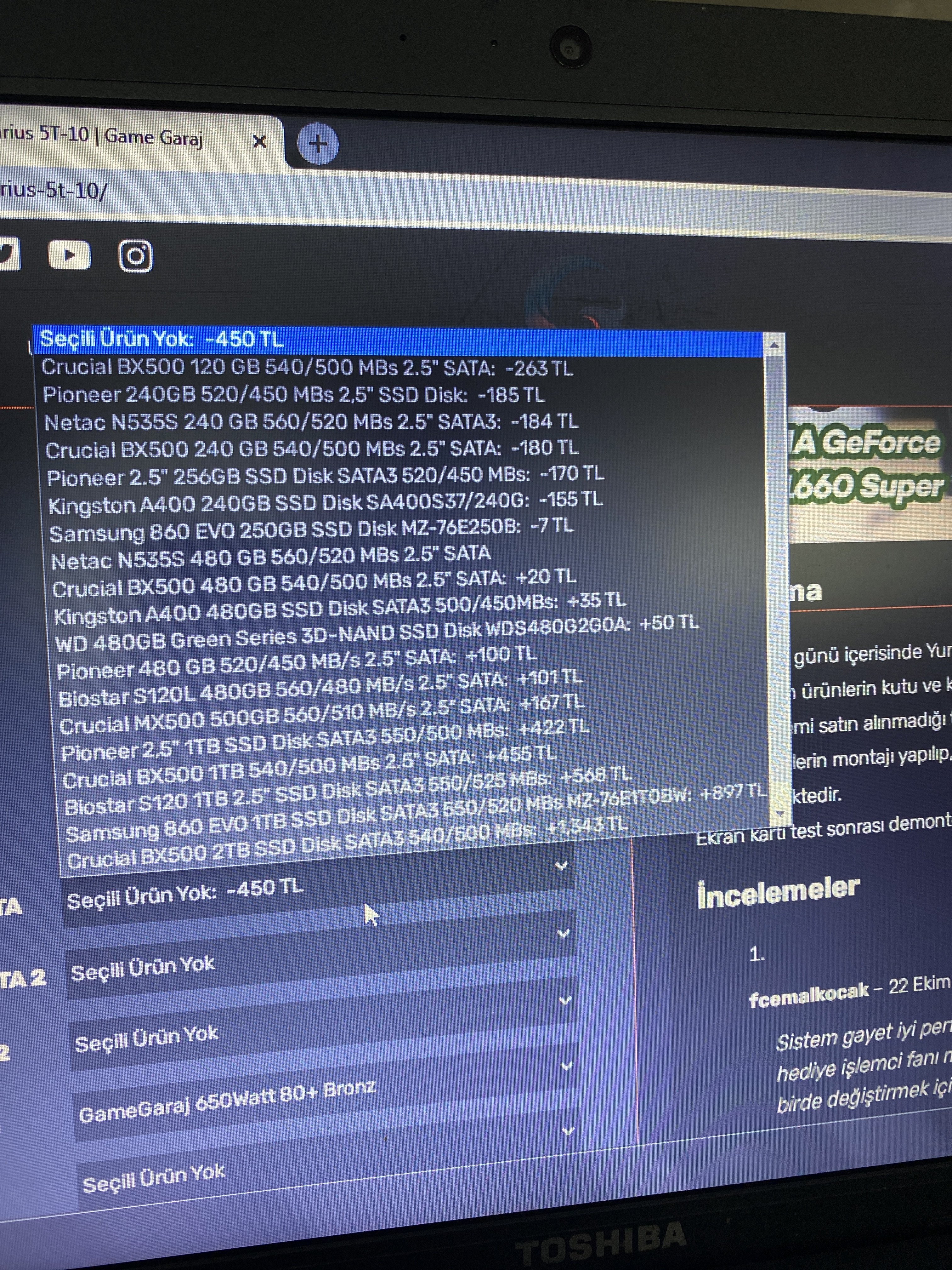 Samsung 860 Evo veya Crucial MX500 alınabilir. Eğer dışarıdan alma şansınız var ise SSD’yi iptal edip 870 Evo’da alabilirsiniz.