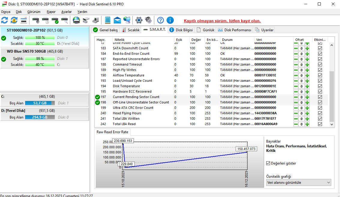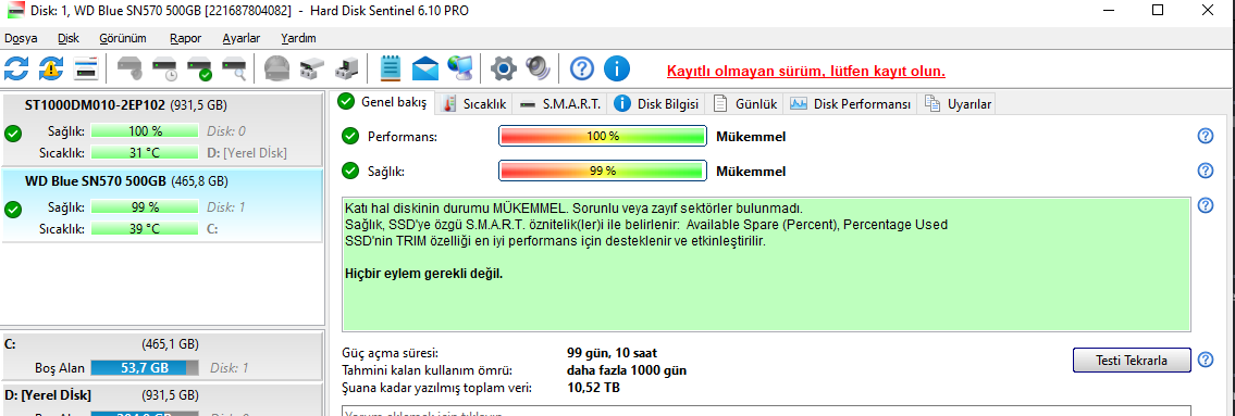 Hocam bir de şey soracağım SN 570 kaç GB yazmaya sağlık düştü onun da sağlık kısmını SS atar mısınız?