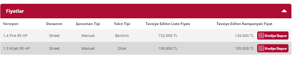 İşte burdalar Hatchback ve Fiyatlar