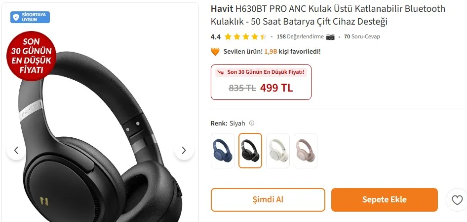 ❌İndirim Bitti! Havit H630Bt Pro Anc Kulak Üstü Katlanabilir Bluetooth Kulaklık 499TL