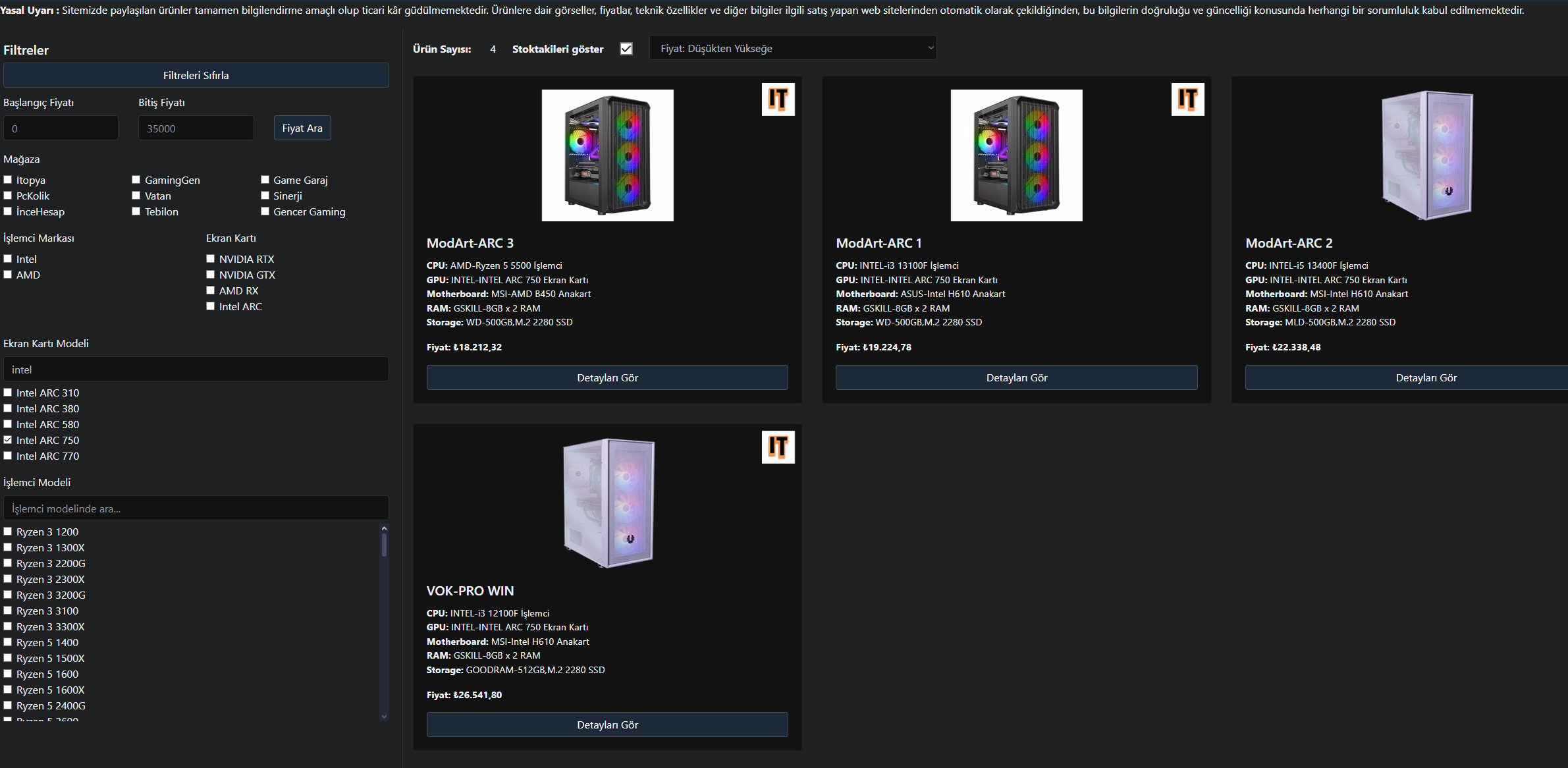 Düzelttim hocam 10 dakikaya gelir muhtemelenhocam ekran kartını arc a750 seçtim ama en ucuzunu göstermedi.Alıntıyı görüntüle